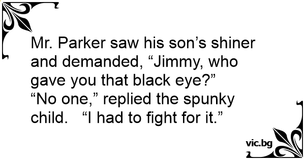 Mr. Parker saw his son’s shiner and demanded, “Jimmy, who gave you that black eye?”
