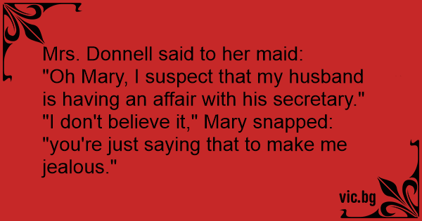 "Oh Mary, I suspect that my husband is having an affair with his secretary."