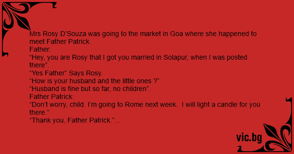 Mrs Rosy D’Souza was going to the market in Goa where she happened to meet Father Patrick.