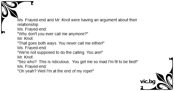 Ms. Frayed-end and Mr. Knot were having an argument about their relationship.