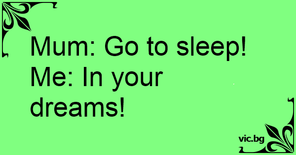 Mum: Go to sleep! Me: In your dreams!