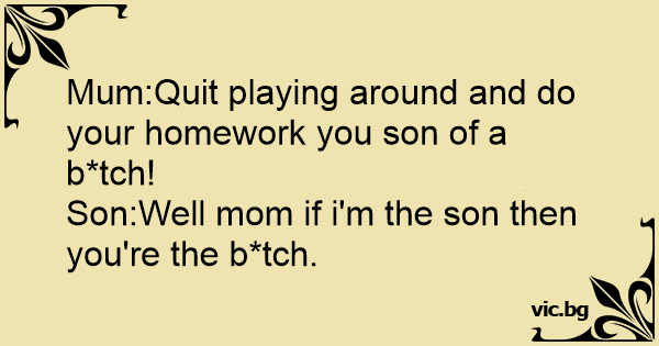 Mum:Quit playing around and do your homework you son of a b*tch!