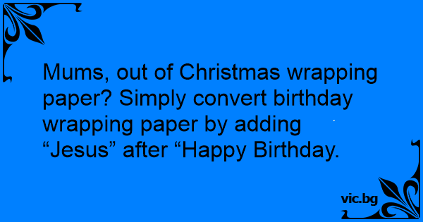 Mums, out of Christmas wrapping paper? Simply convert birthday wrapping paper by adding “Jesus” after “Happy Birthday.