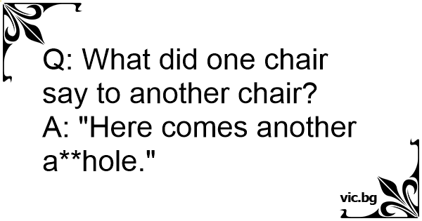 Q: What did one chair say to another chair?<br />A: "Here comes another a**hole."