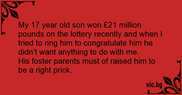 My 17 year old son won £21 million pounds on the lottery recently and when I tried to ring him to congratulate him he didn’t want anything to do with me.