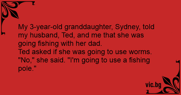 My 3-year-old granddaughter, Sydney, told my husband, Ted, and me that she was going fishing with her dad.