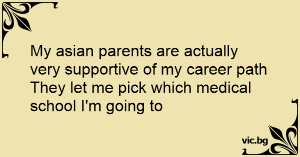 My asian parents are actually very supportive of my career path
