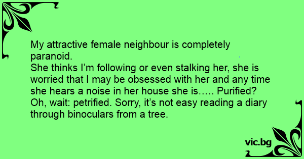 My attractive female neighbour is completely paranoid.