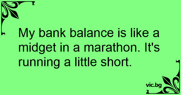 My bank balance is like a мidgет in a marathon. It's running a little short.