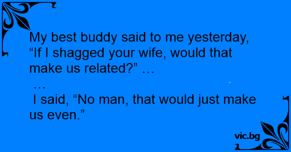 My best buddy said to me yesterday, “If I shagged your wife, would that make us related?” …