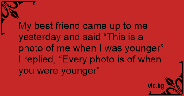 My best friend came up to me yesterday and said “This is a photo of me when I was younger”