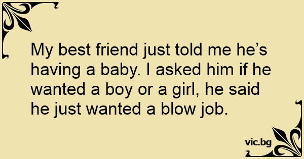 My best friend just told me he’s having a baby. I asked him if he wanted a boy or a girl, he said he just wanted a вlоw job.