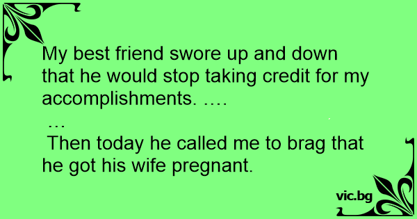 My best friend swore up and down that he would stop taking credit for my accomplishments. …. … Then today he called me to brag that he got his wife pregnant.