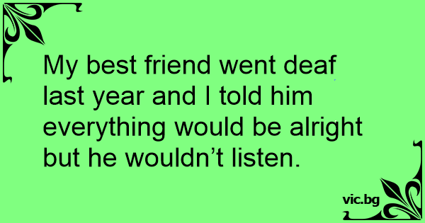 My best friend went deaf last year and I told him everything would be alright but he wouldn’t listen.