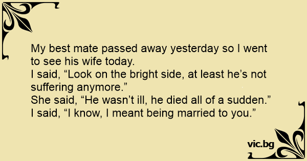 I said, “Look on the bright side, at least he’s not suffering anymore.”