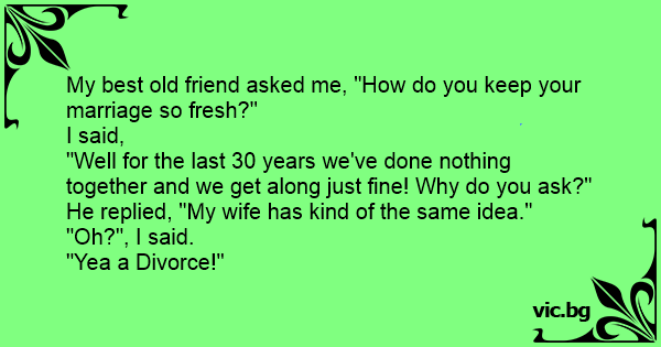 My best old friend asked me, "How do you keep your marriage so fresh?"