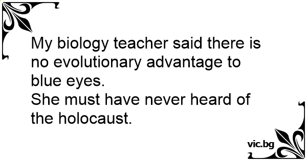 My biology teacher said there is no evolutionary advantage to blue eyes.