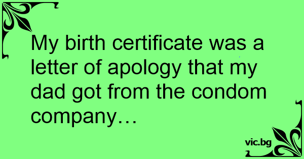 My birth certificate was a letter of apology that my dad got from the соndом company…
