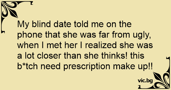 My blind date told me on the phone that she was far from ugly, when I met her I realized she was a lot closer than she thinks! this b*tch need prescription make up!!