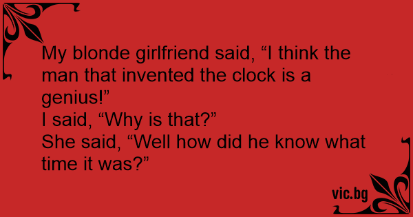 My blonde girlfriend said, “I think the man that invented the clock is a genius!”