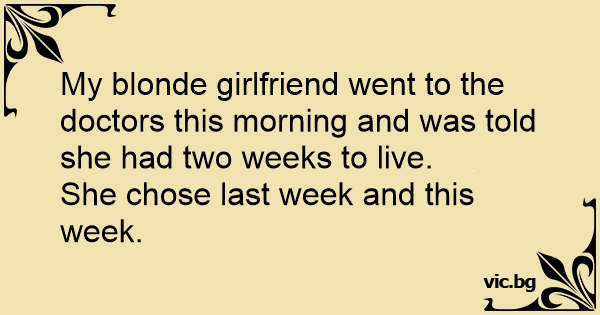 My blonde girlfriend went to the doctors this morning and was told she had two weeks to live.
