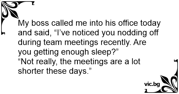 My boss called me into his office today and said, “I’ve noticed you nodding off during team meetings recently. Are you getting enough sleep?”