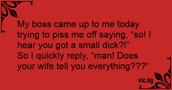 My boss came up to me today trying to рiss me off saying, “so! I hear you got a small diск?!”