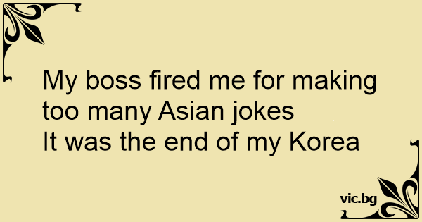 My boss fired me for making too many Asian jokes
