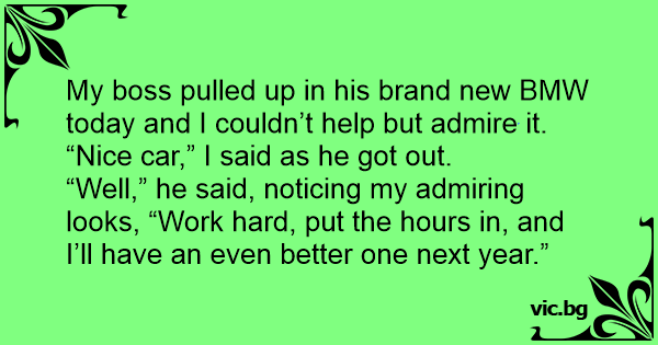 My boss pulled up in his brand new BMW today and I couldn’t help but admire it.