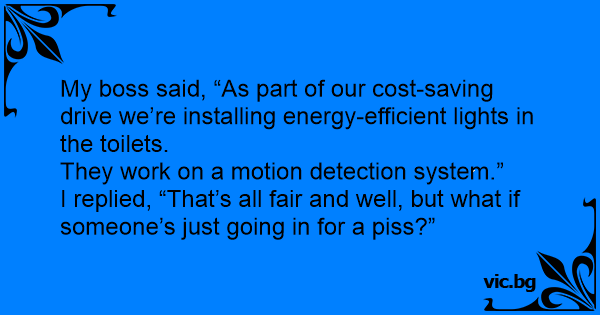 My boss said, “As part of our cost-saving drive we’re installing energy-efficient lights in the toilets.