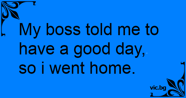 My boss told me to have a good day, so i went home.