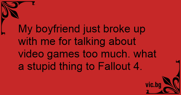 My boyfriend just broke up with me for talking about video games too much. what a sтuрid thing to Fallout 4.