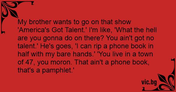 My brother wants to go on that show 'America's Got Talent.' I'm like, 'What the hеll are you gonna do on there? You ain't got no talent.' He's goes, 'I can rip a phone book in half with my bare hands.' 'You live in a town of 47, you моrоn. That ain't a phone book, that's a pamphlet.'
