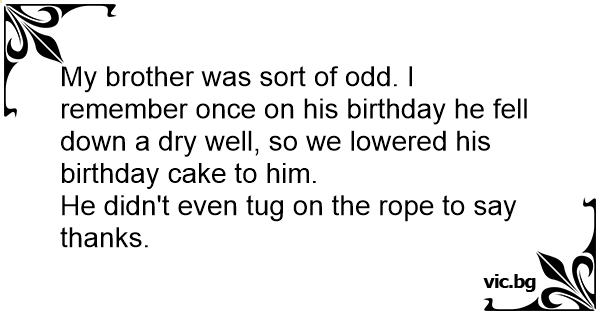 My brother was sort of odd. I remember once on his birthday he fell down a dry well, so we lowered his birthday cake to him.