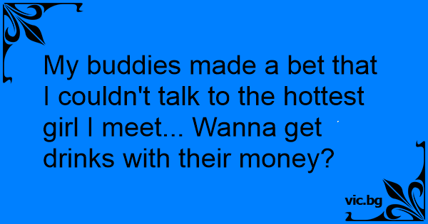 My buddies made a bet that I couldn't talk to the hottest girl I meet... Wanna get drinks with their money?
