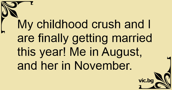 My childhood crush and I are finally getting married this year! Me in August, and her in November.