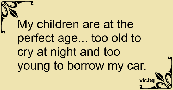 My children are at the perfect age... too old to cry at night and too young to borrow my car.