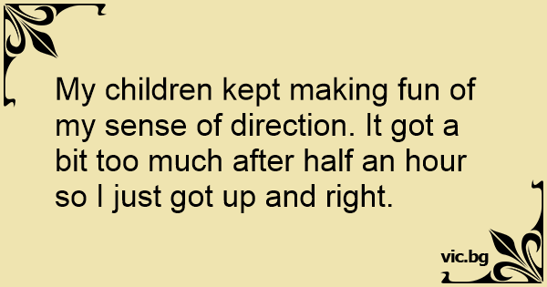 My children kept making fun of my sense of direction. It got a bit too much after half an hour so I just got up and right.