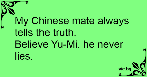 My Chinese mate always tells the truth.