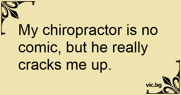 My chiropractor is no comic, but he really cracks me up.