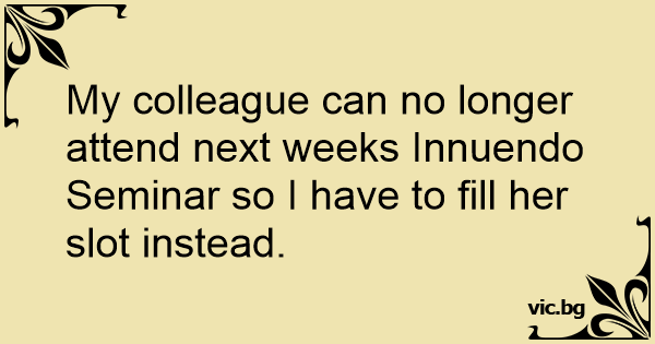 My colleague can no longer attend next weeks Innuendo Seminar so I have to fill her slot instead.