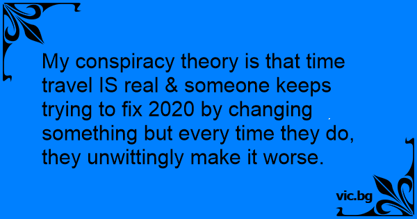 My conspiracy theory is that time travel IS real & someone keeps trying to fix 2020 by changing something but every time they do, they unwittingly make it worse.
