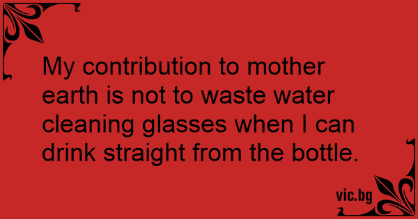 My contribution to mother earth is not to waste water cleaning glasses when I can drink straight from the bottle.