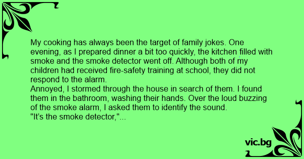 My cooking has always been the target of family jokes. One evening, as I prepared dinner a bit too quickly, the kitchen filled with smoke and the smoke detector went off. Although both of my children had received fire-safety training at school, they did not respond to the alarm.