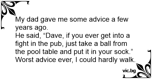 He said, “Dave, if you ever get into a fight in the pub, just take a ball from the pool table and put it in your sock.”