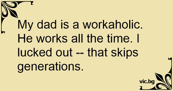My dad is a workaholic. He works all the time. I lucked out -- that skips generations.