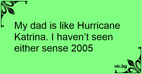 My dad is like Hurricane Katrina. I haven’t seen either sense 2005