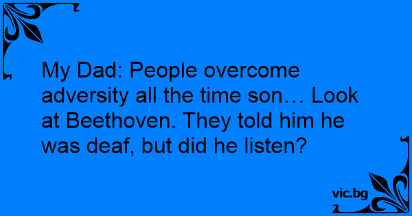 My Dad: People overcome adversity all the time son… Look at Beethoven. They told him he was deaf, but did he listen?