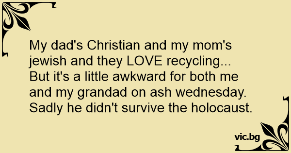 My dad's Christian and my mom's jewish and they LOVE recycling...