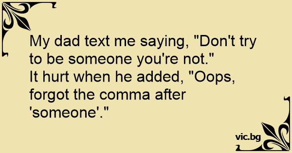 It hurt when he added, "Oops, forgot the comma after 'someone'."